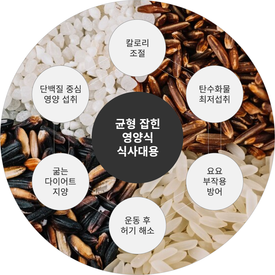식사의 일부 또는 전부를 대신할 수 있도록 필요한 성분을 가감하여 조제된 식품입니다.